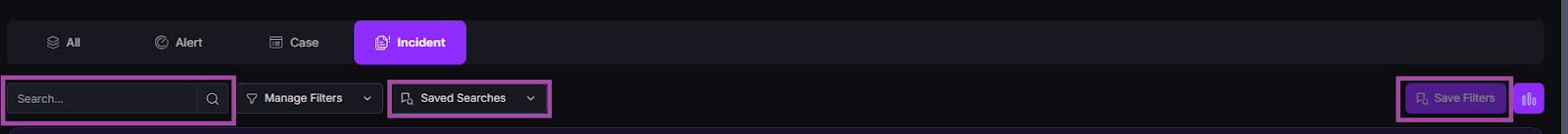 - A Search bar is present at the top of the page. You can input keywords, IDs, or incident subjects to find specific records.