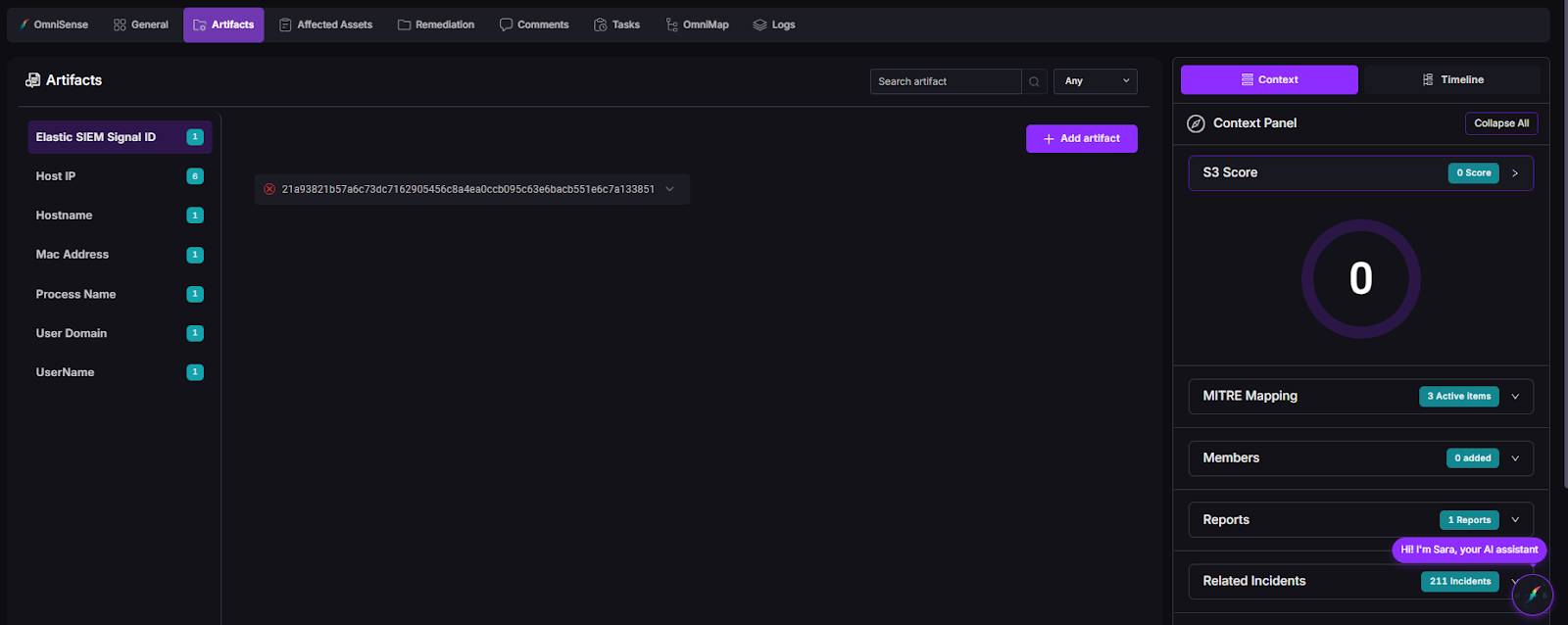 The Evidence tab ensures secure, organized, and verifiable documentation of all materials supporting an investigation. By maintaining structured evidence records, analysts enhance audit readiness, support compliance requirements, and provide rich contextual data for OmniSense correlation and incident reconstruction.