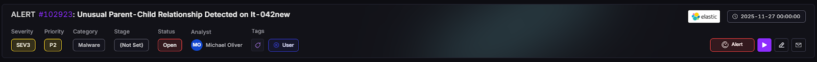 - Assign To – Select the analyst or team responsible for investigating the alert.